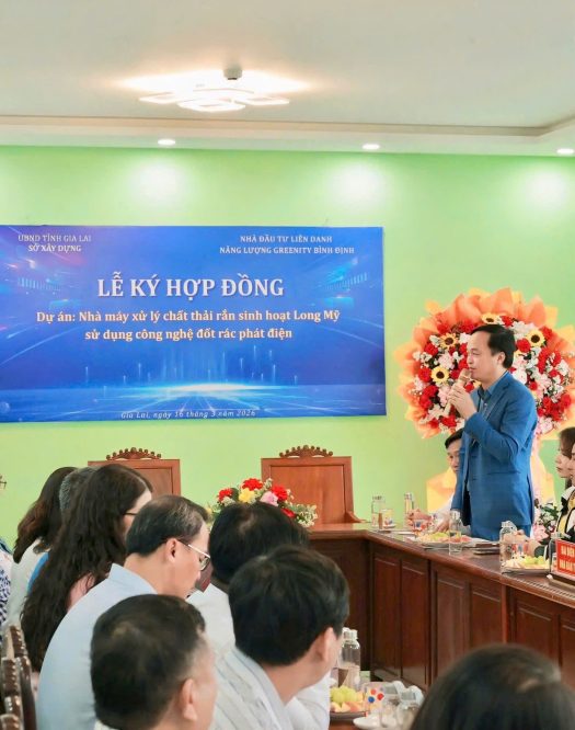 Ngày 16/3/2026, tại trụ sở Sở Xây dựng tỉnh Gia Lai (số 08 Lê Thánh Tôn, phường Quy Nhơn), một sự kiện quan trọng đã diễn ra đánh dấu bước chuyển mình mạnh mẽ trong công tác bảo vệ môi trường và phát triển năng lượng tái tạo của tỉnh: Lễ ký kết Hợp đồng Dự án Nhà máy xử lý chất thải rắn sinh hoạt Long Mỹ sử dụng công nghệ đốt rác phát điện (Điện rác Long Mỹ giai đoạn 1).