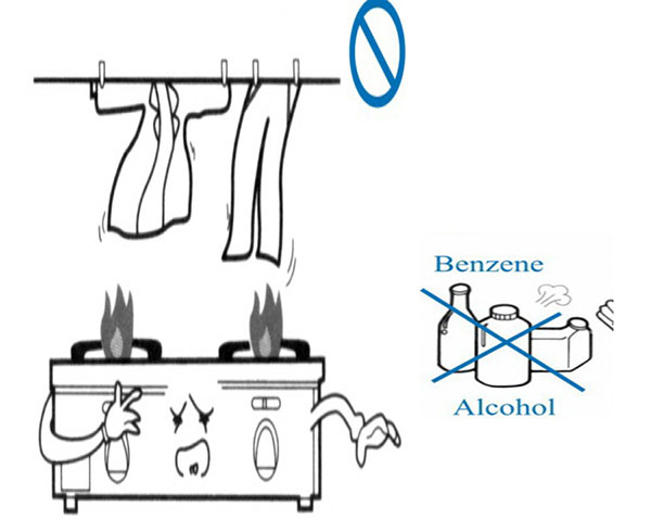 Tránh dùng bếp gas ở gần các thiết bị điện, các vật dụng dễ bắt lửa